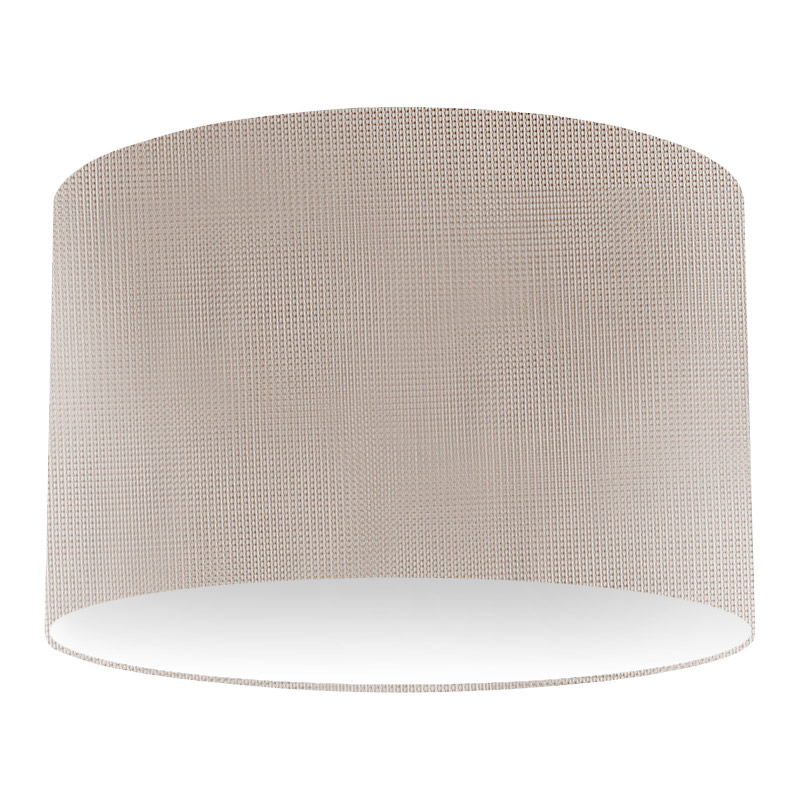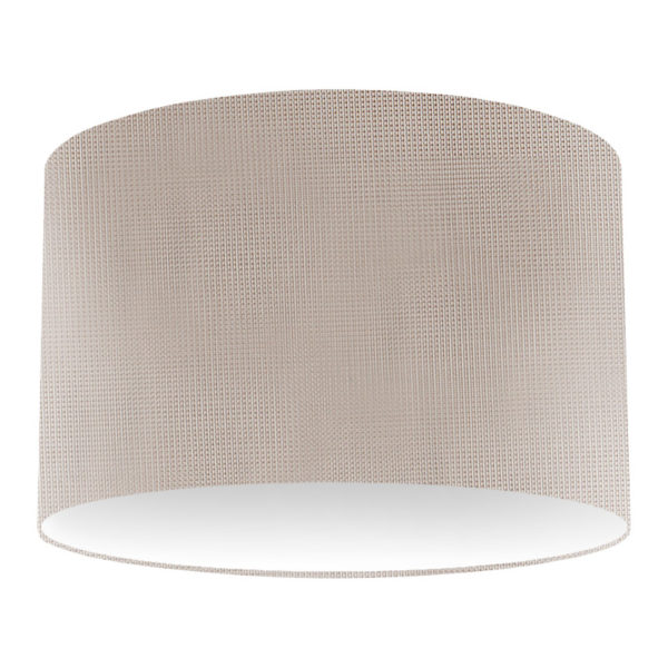 A beautiful light grey Feather silk drum lampshade with White lining suitable for both table lampshade and pendant/ceiling lampshade. Handmade in the UK. Fits all ES and BC lamp holders. Max 60W bulb or Low Energy Equivalent.