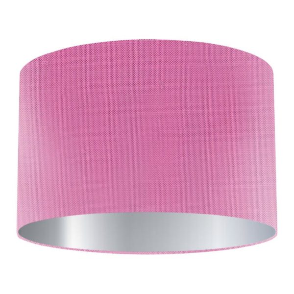 A beautiful pink Flamingo silk drum lampshade with Silver lining suitable for both table lampshade and pendant/ceiling lampshade. Handmade in the UK. Fits all ES and BC lamp holders. Max 60W bulb or Low Energy Equivalent.