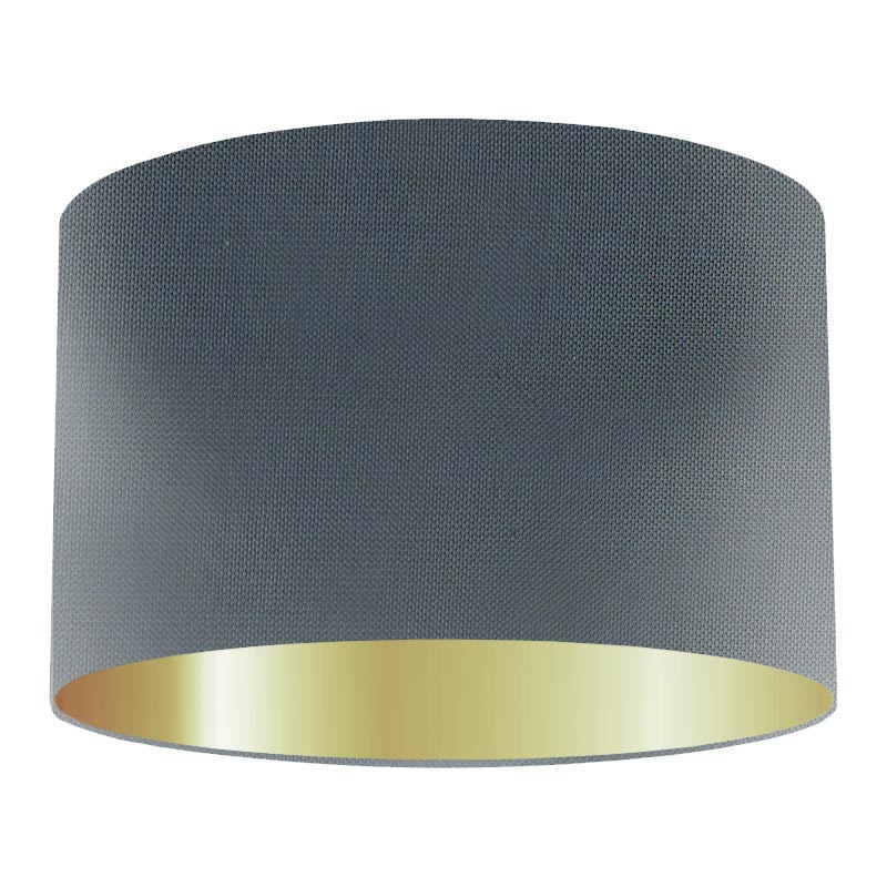 A beautiful dark blue grey Gunmetal silk drum lampshade with Gold lining suitable for both table lampshade and pendant/ceiling lampshade. Handmade in the UK. Fits all ES and BC lamp holders. Max 60W bulb or Low Energy Equivalent.