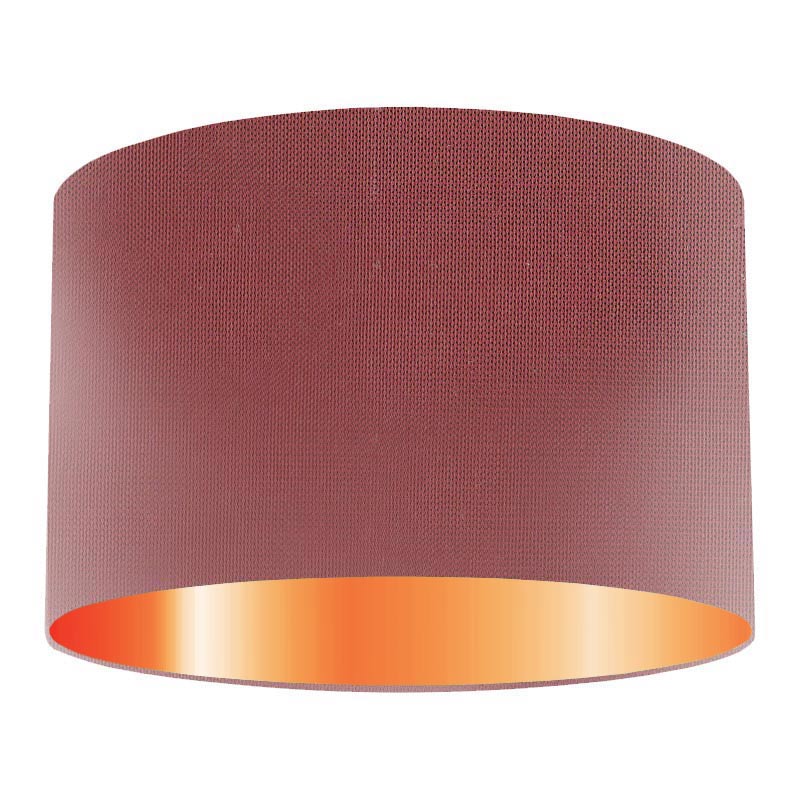 A beautiful deep pink Incense silk drum lampshade with rose Copper lining suitable for both table lampshade and pendant/ceiling lampshade. Handmade in the UK. Fits all ES and BC lamp holders. Max 60W bulb or Low Energy Equivalent.